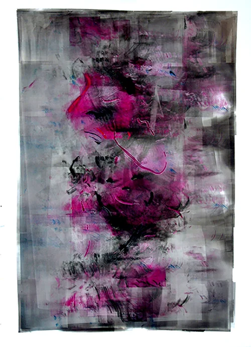 These unique paintings vary in size from A4 to A3. They are painted using rollers, fingers and occasionally brushes with Lithography Inks which are 100% light fast mostly on to glossy white heavy duty stock. In addition I use oil pastel and occasionally a combination of the two media. The ink may have varnishes and other additives mixed in to the inks to change the final surface of the work.